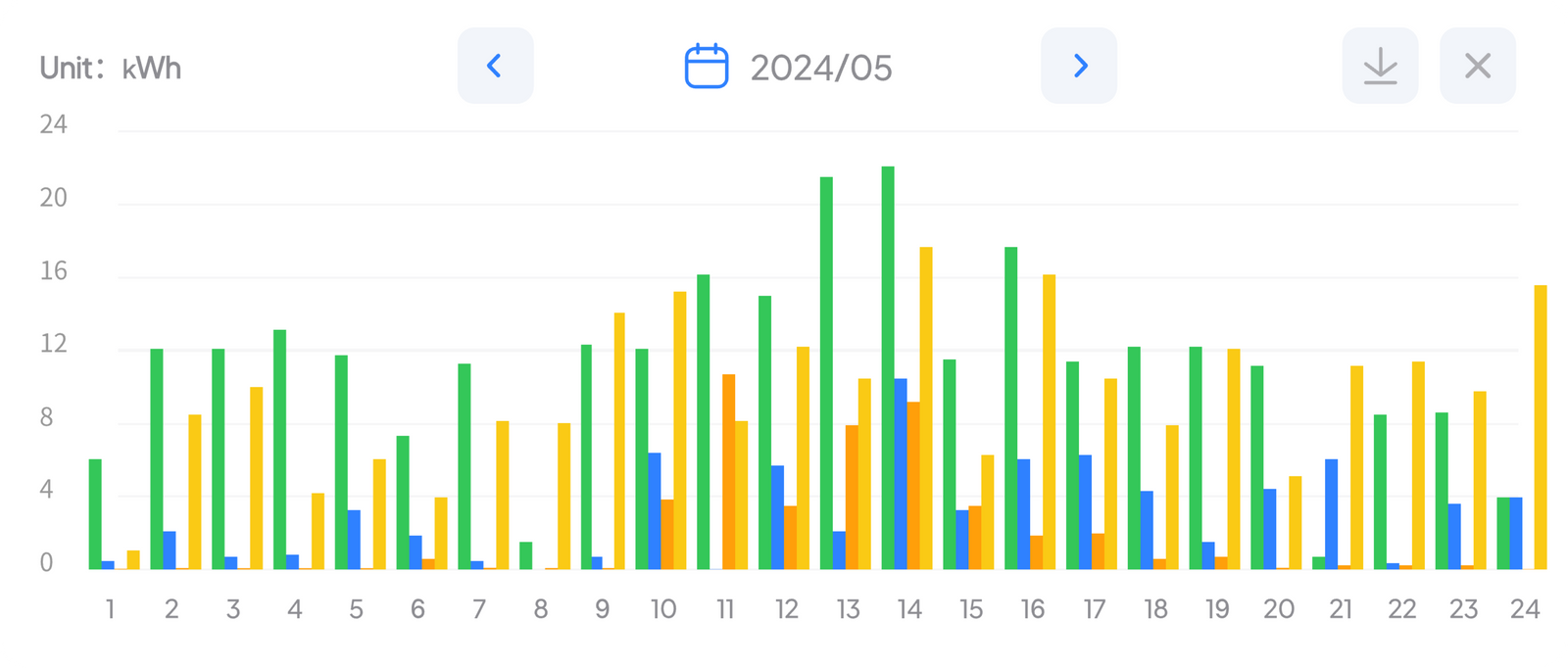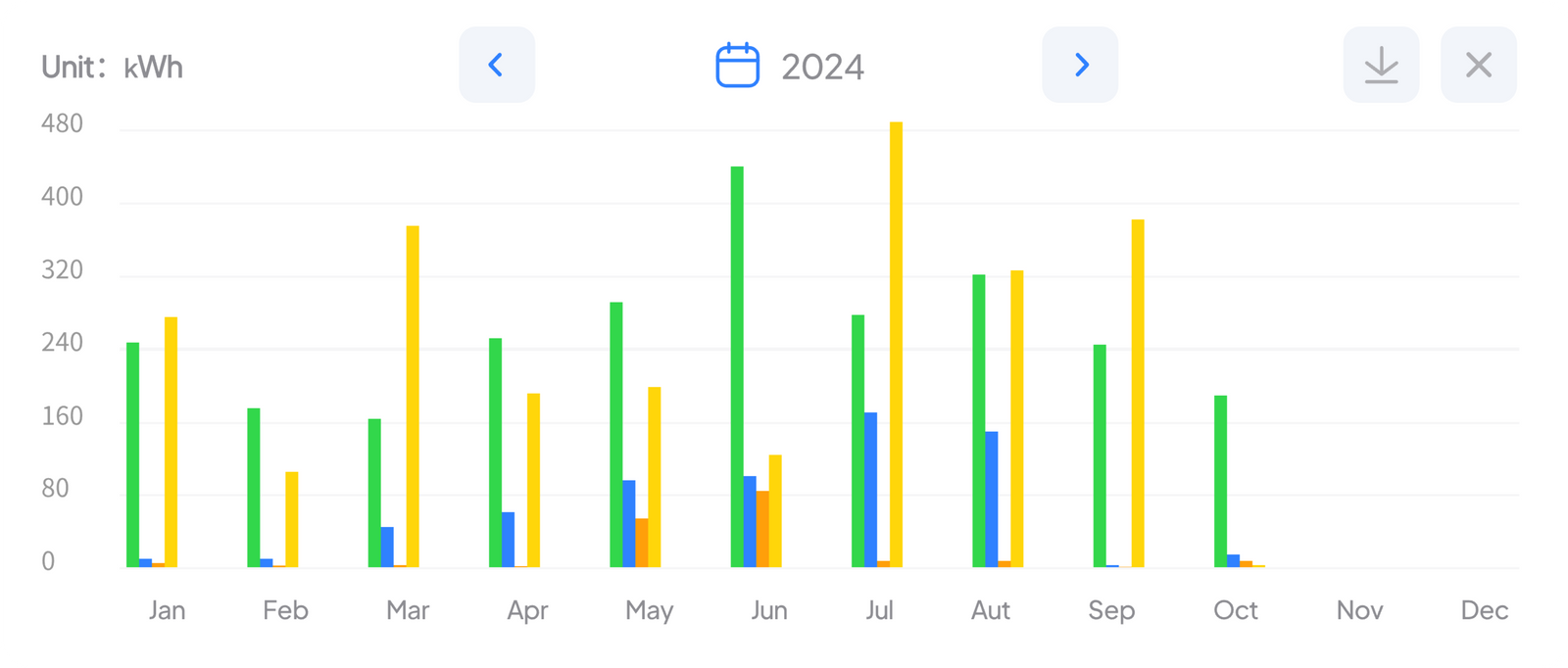 Keep tab on your energy usage, generation, and storage. View clear graphs of daily, weekly, monthly, or yearly patterns to identify peak periods and manage your energy more efficiently.
