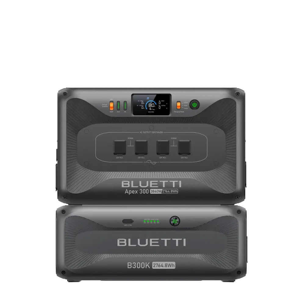 - A: Runtime depends on your setup size and how much electricity you use. A single Apex 300 with expansion batteries can keep essentials going for 12–24 hours, while larger configurations can last several days. In terms of lifespan, BLUETTI’s LiFePO₄ batteries are designed for 10–15 years of use, with over 3,000 charging cycles.