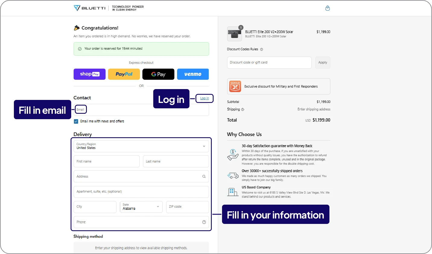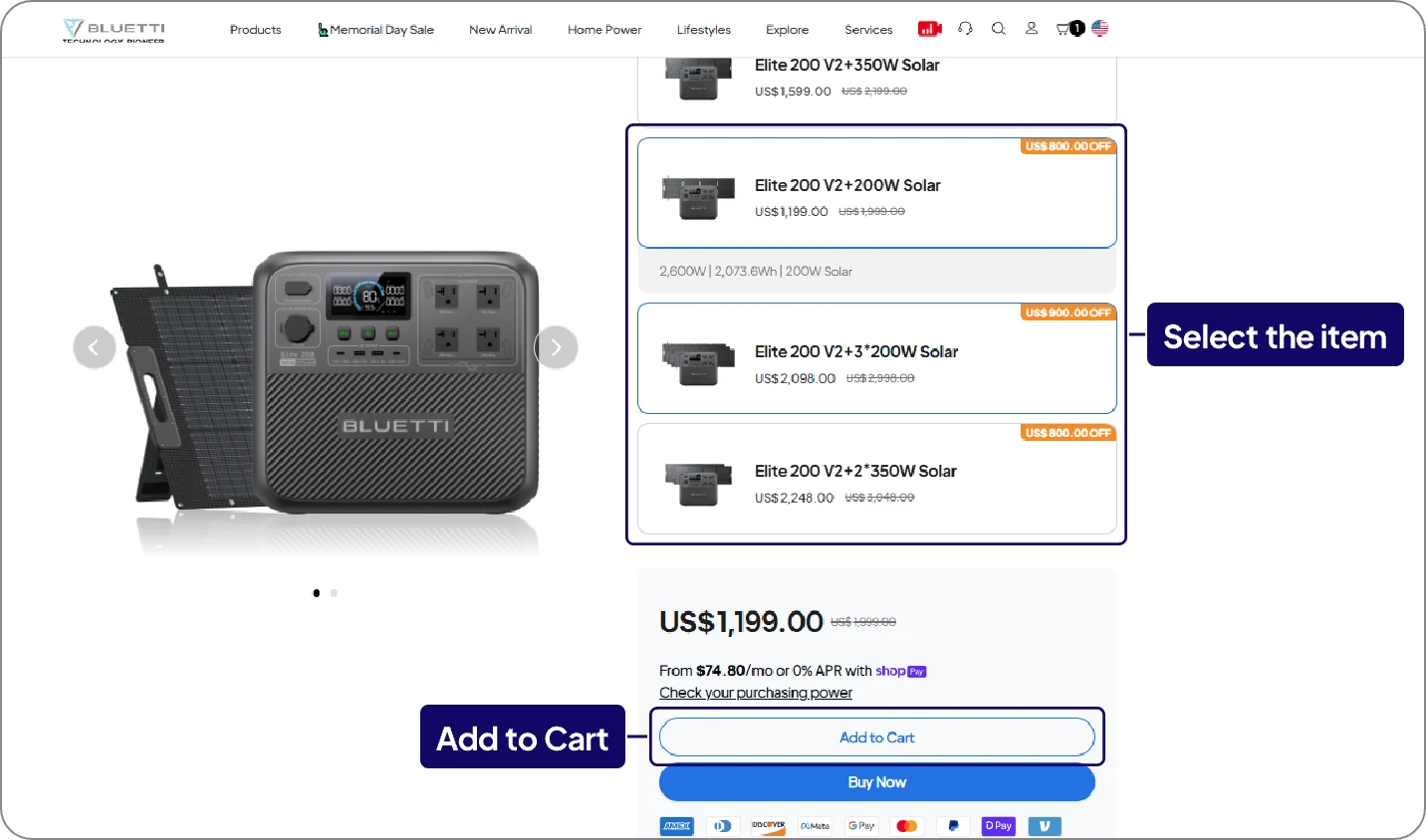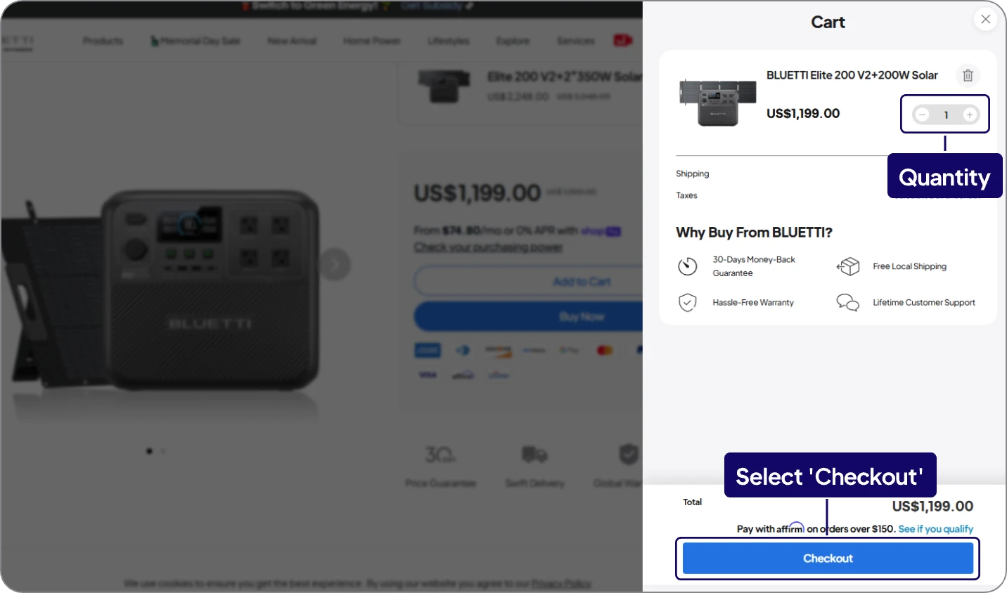 Thank you for visiting BLUETTI! Below, you will find the shopping procedure for the official BLUETTI website. We wish you a happy shopping experience!
