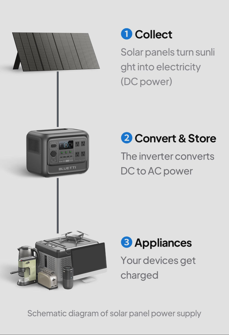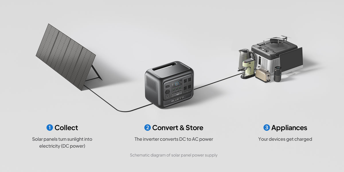 - A solar panel captures sunlight and converts it into electricity. BLUETTI panels use high-efficiency monocrystalline cells to make the most of every ray—delivering reliable power wherever there's sun.